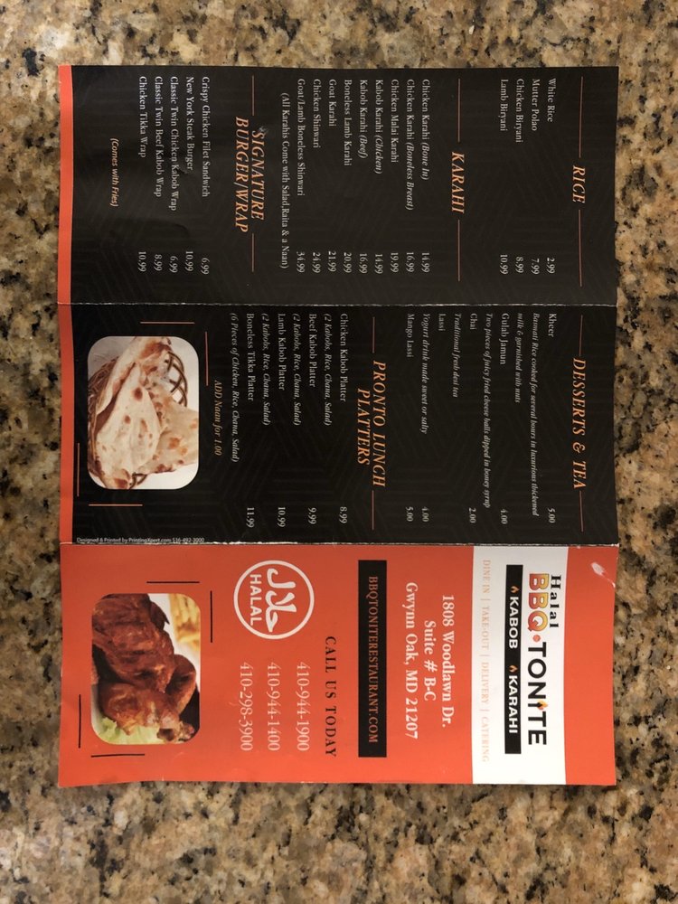BBQ Tonite Menu